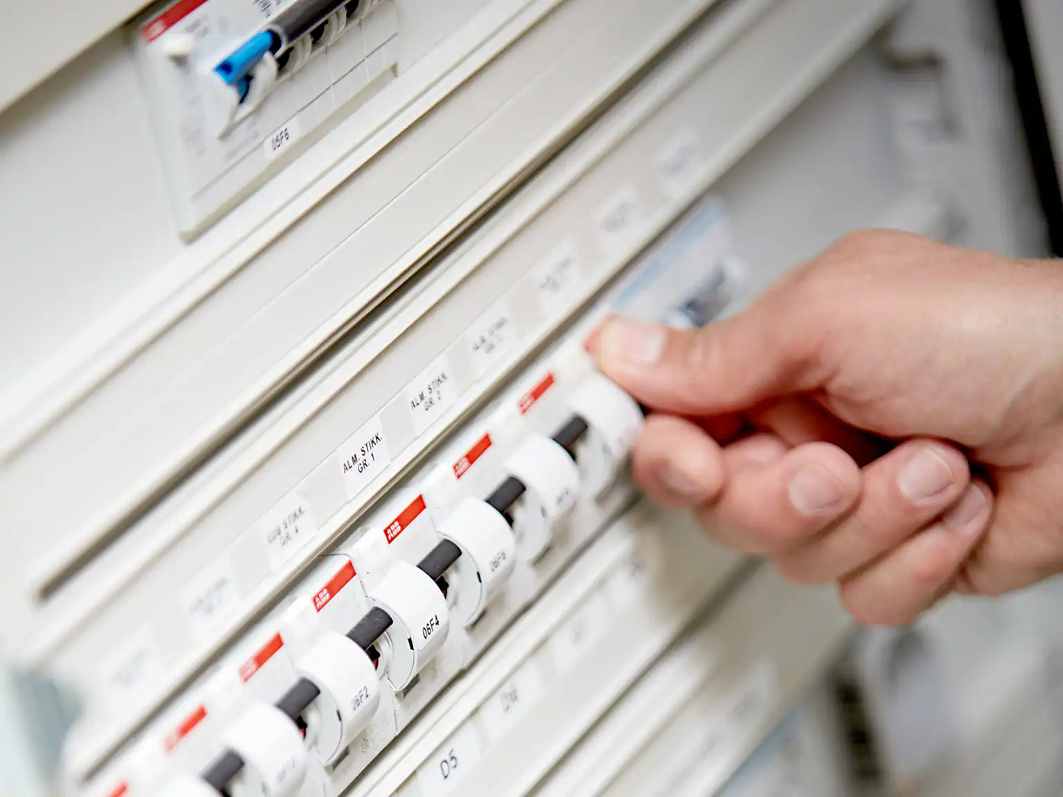 Har du en nyere eltavle, følger du samme skridt, men her slår kontakten på gruppen bare ud, hvis der opstår kortslutninger og overspænding. Derfor slår du bare gruppe-kontakten til igen. Der er ingen fysisk sikring, som skal skiftes.