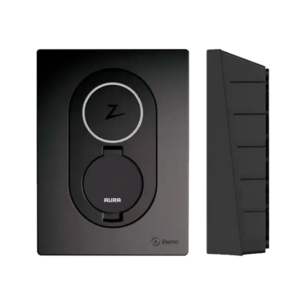En ladepakke fra AURA kommer med en Zaptec Go-ladeboks. Zaptec-ladeboksen er både lille, kompakt og prisvindende, og så er den en af markedets mest populære.
