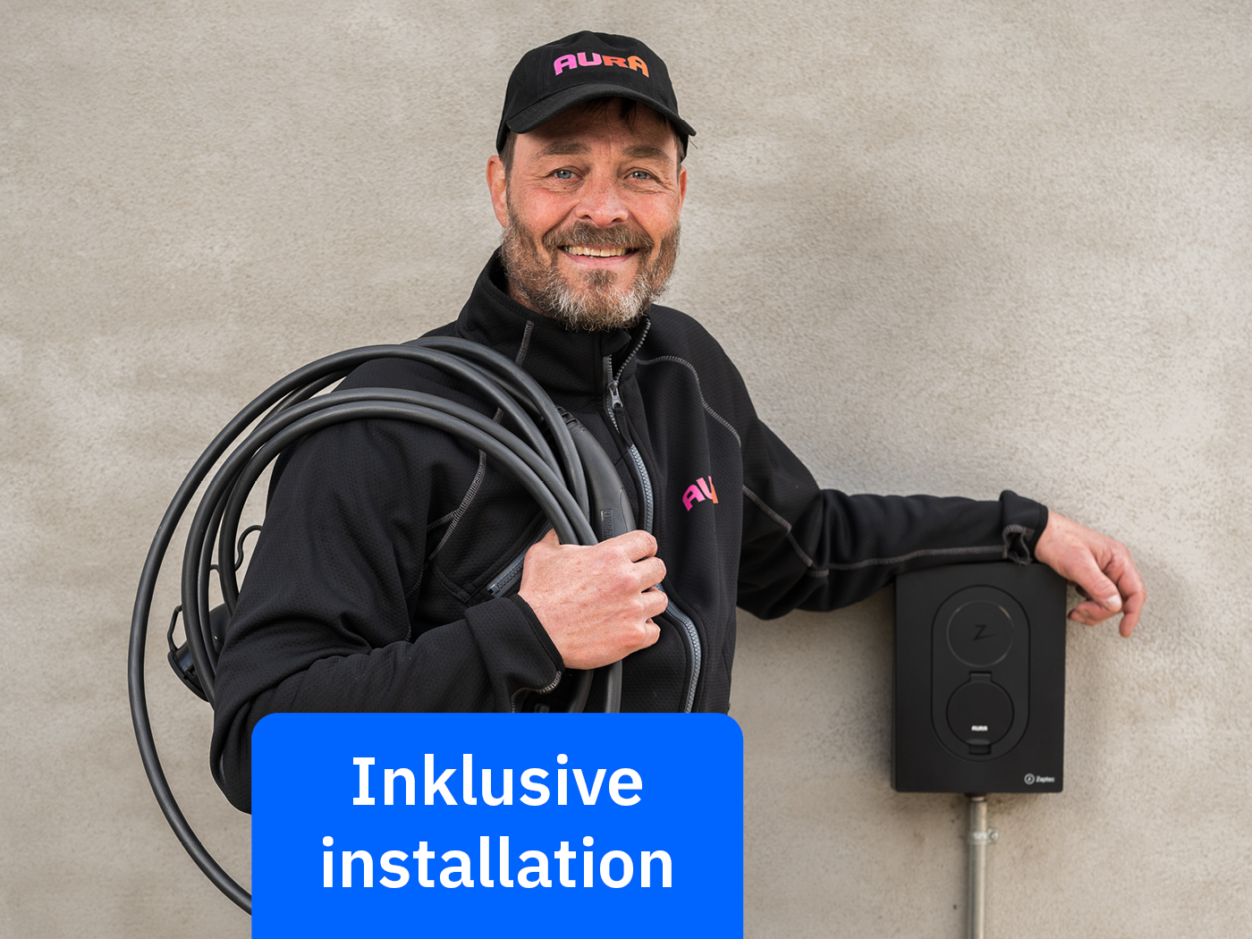Vær opmærksom på, at vores ladeboks kun er på størrelse med en tablet. Hav gerne dette med i dine overvejelser, når du skal vælge, hvor vi skal installere ladeboksen.