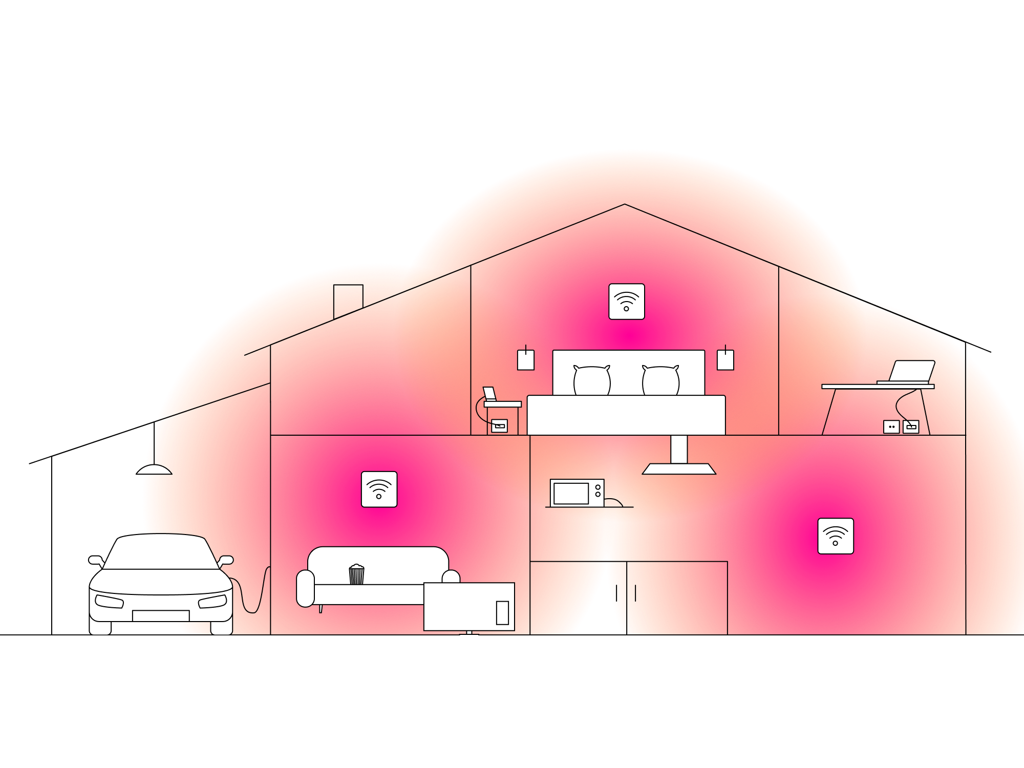 Hvis du bor i et stort hus med flere etager, og din router står i stueetagen, kan det være svært at opnå ordentlig hastighed på førstesalen. En effektiv løsning er at tilføje én eller flere ekstra routere eller access points, så det gode signal kan sprede sig ud i hele huset og dermed opretholde høj hastighed og stabilitet.
